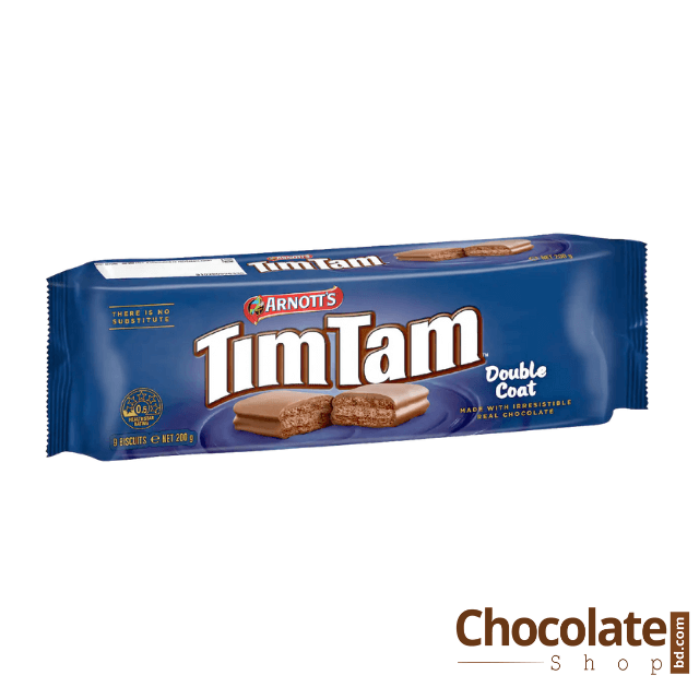• Arnott’s Tim Tam Double Coat is a delicious biscuit with a mouth-watering combination of crunchy biscuit, luscious cream centre, wrapped in a thicker milk chocolate coating .