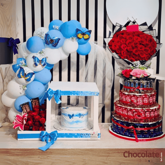 - Celebrate every moment with the Chocolate Tower with Flowers Bouquet and Cake with Balloon Decoration.