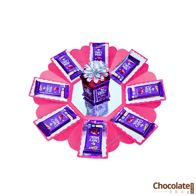 The Chocolate Mix Premium Gift Pack A8 is a stylish round rolling box with one layer of 13 Dairy Milk 13.2g chocolates presented in vibrant colors including pink black purple yellow and red. Designed for gifting and sharing it combines taste and elegance in one perfect package.