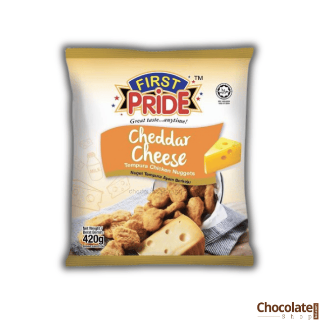 • Bring home the cheesy-crispy joy of First Pride Cheddar Cheese Tempura Chicken Nuggets—420g of pure delight!