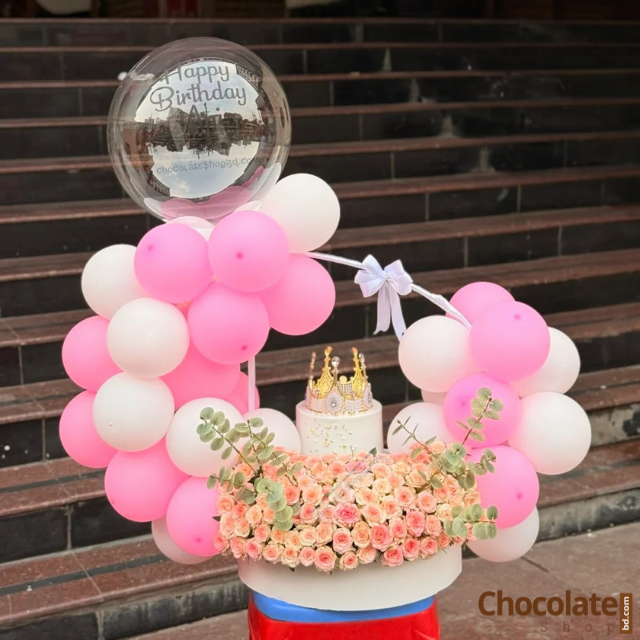 Make every occasion magical with our Luxury Surprise Cake C13 with Rose and Balloon Decoration — a perfect blend of sweetness, elegance, and celebration.